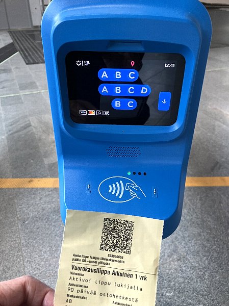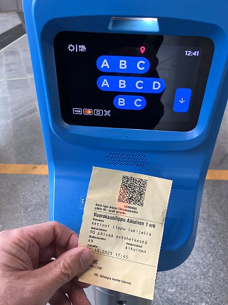 ABエリアの一日券を持っていても、たとえばエスポー(ヌークシオ)には行けません。その場合、ABCチケットが必要になります。1日券を持ってるからと油断して近郊列車に乗り、つい規定ゾーンを超えてしまうと、悪気はなくても無賃(不正)乗車となり、検札員がくれば問答無用で100ユーロ(2025年)の罰金が科されます。