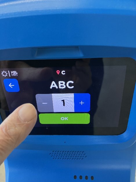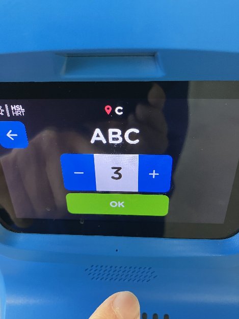 たとえば3枚なら + 部分を2回押し、OK画像で確定。その後、読み取り機にクレカをかざします。