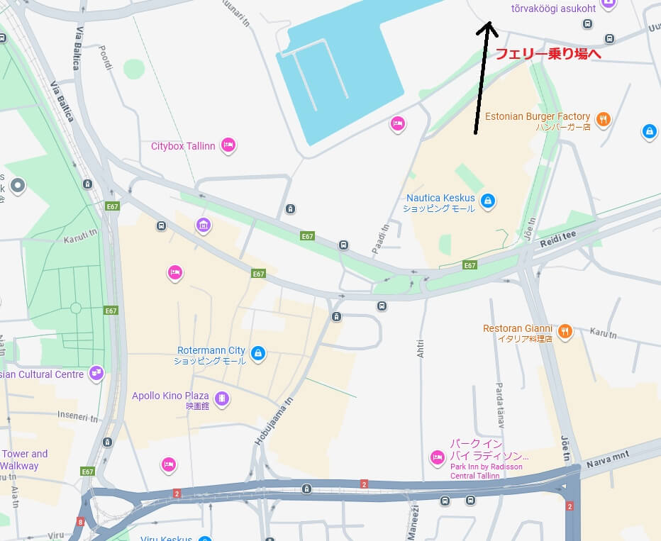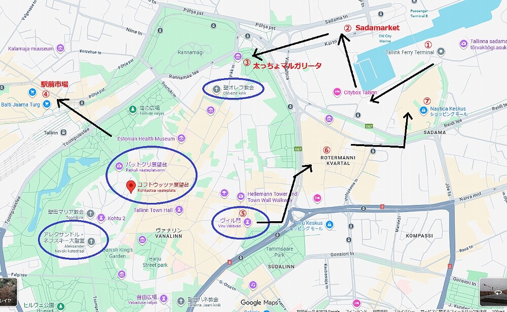 上掲地図の①がタリンク・シリヤのフェリー発着場。ここからまずは旧市街入り口の一つである太っちょマルガリータ(③)を目指すのが定番。