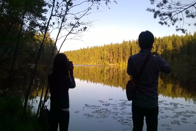 「幻想的な白夜の中、静寂に包まれた森を歩く・・・」、というのがナイトハイキングの典型的なイメージでしょうか。あるいは「いつまでも太陽が輝く湖畔にたたずみたい」といったものでしょうか。登山経験者なら「ランプの灯りを頼りに真っ暗闇のルートをたどる」ことを思い浮かべるかもしれません。このように、ナイトハイキングの内容は様々です。「白夜」にしても、その印象は人によって異なるはず。そこで、まずはイメージを膨らませてください。
